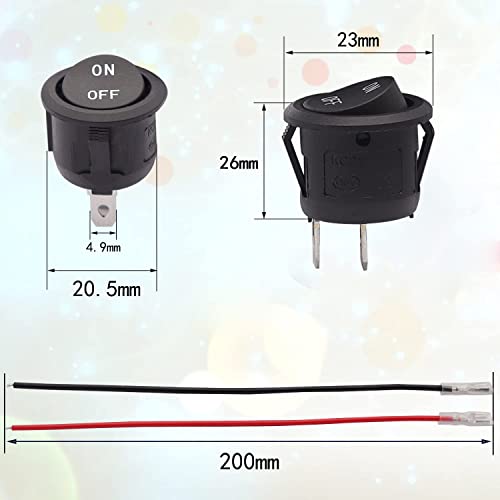 La confezione include: interruttore a bilanciere rotondo nero da 10 pezzi con fili terminali bloccati da 4,8 mm