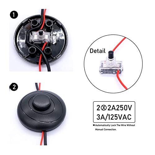 Taiss 2 pezzi Interruttore a pedale rotonda,Piede a pavimento Inline Pedal Push Switch AC 100-250V per la luce LED On-Off Control Lampada dell'albero di Natale Decorazione di Natale DJT-2P