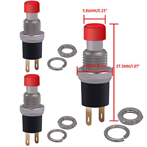 Taiss 3 pezzi Interruttore Pulsante Rontondo Rosso Pulsante Momentaneo 7mm ON-OFF 1A 250V AC 2 pin SPST ON/OFF PBS-110-L-R