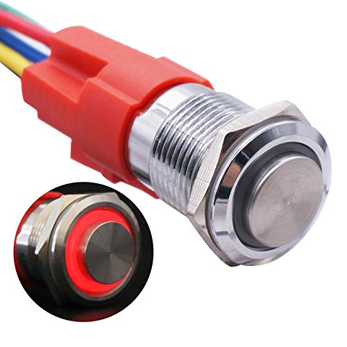 Taiss/19mm IP65 Impermeabile Latching Interruttore a pulsante in Metallo a testa alta 3/4''5A DC12V acciaio inossidabile Rosso Interruttore ad anello LED 1NO 1NC con presa a filo YJ-GQ19BH-L-R