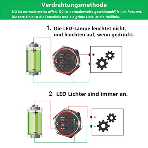 Contenuto della confezione: 1 x interruttore a pulsante in metallo rosso 1 x presa di alimentazione。L'interruttore e il LED sono separati, il LED può essere sempre acceso o solo quando l'interruttore è acceso, a seconda di come lo si collega