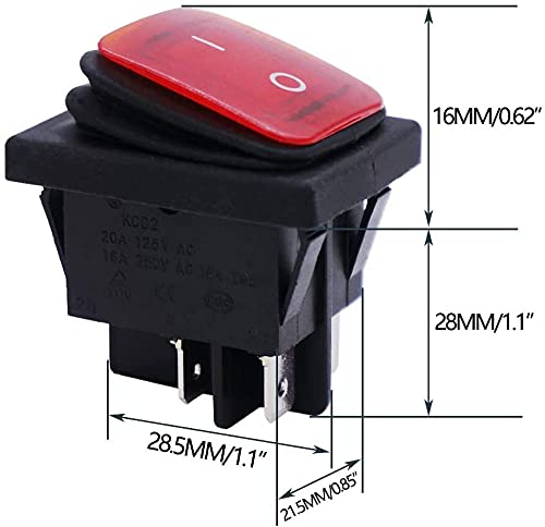 Taiss/2Pcs 16A 250V 20A 125V Interruttore a bilanciere Impermeabile 4 pin 2 posizioni DPST ON/OFF LED rosso illuminato Interruttore a Levetta barca o auto KCD2-201N-2-W-R