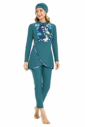 TaissBocco Costume da Bagno Musulmano Costume da Bagno Islamico 3 Pezzi Costume da Bagno a Maniche Lunghe Hijab Burkini a Copertura Totale (XS, T1)
