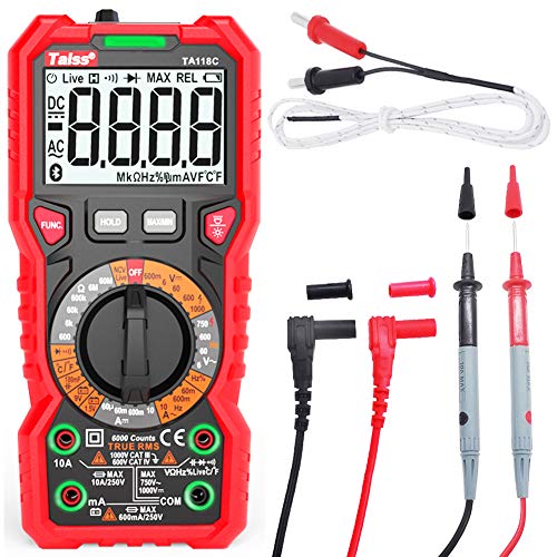 Taiss/Multimetro Digitale Avanzato Multifunzione DC AC 6000conteggi Tester Misurazione di Temperatura,Induttanza e Capacità Tester Senza Contatto Retroilluminazione Funzione di Rilevamento NCV TA118C