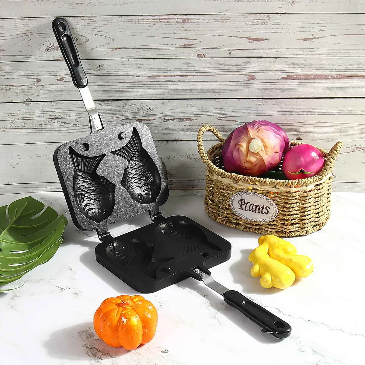 Taiyaki Japanese Fish-Shaped Bakeware Waffle Pan Maker 2 Cast Home Cake Tools