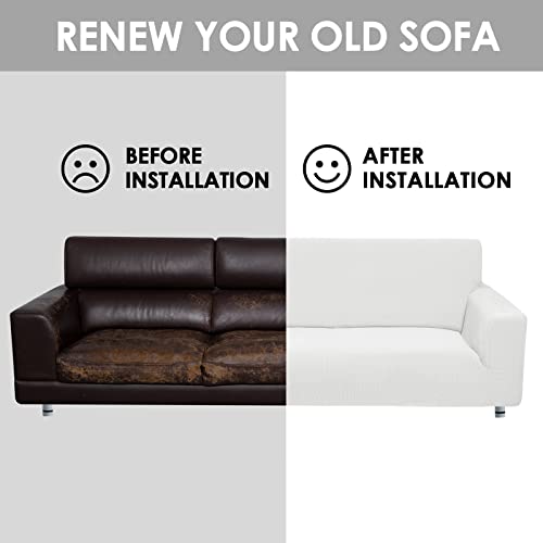 Taiyang Copridivano in tessuto elasticizzato, copridivano jacquard a 1 posti, con bastoncini in schiuma antiscivolo (1 Posti, Bianco)