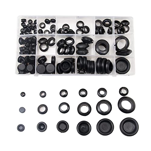 TAIYOU 125 Pezzi Passacavo Gomma 18 Misure Nero Tappi per Fori Occhiello Gomma per Proteggere Cavi Spina Cavo Camper Auto Macchina Moto