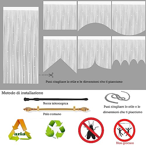 Taiyuhomes Tenda Porta Esterna Tenda Antimosche Per Porta Esterna Tenda a Fili Interna Tenda Perline Esterno Per Mosche Divisorio Per Stanze Finestre Decorazioni 90x200cm Bianco