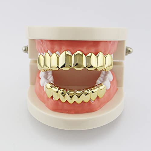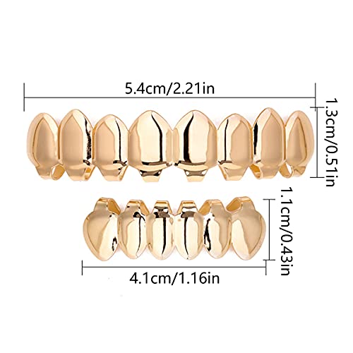 TAIZER Griglie Denti Hip Hop 2PCS Griglie Denti Placcate Oro Denti Cappellini Grillz Set Denti Grill Tooth Vampire Teeth Grill Hiphop Decorazione Denti Denti Bling Grill Halloween Ornamento Regalo
