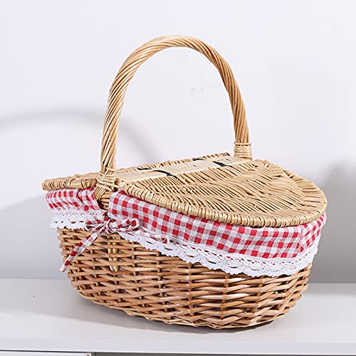 Takefuns Cestini in vimini con coperchio e fiore artificiale, con fodera in reticolo, cestino in vimini con manico in pizzo, cesto regalo, cestino portaoggetti piccolo per picnic