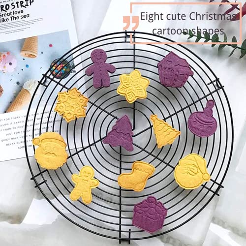Takhery Set di 8 formine per biscotti di Natale, in plastica, a molla, biscotti, formine per pasticceria, 3D