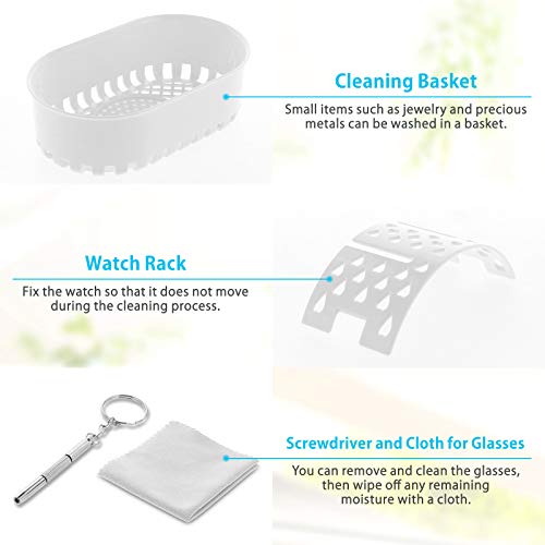 【Facile da Usare】 Il pulitore ad ultrasuoni per occhiali è immediatamente pronto per l'uso. Selezionare il ciclo appropriato ed è pronto per l'uso con la pressione del pulsante "ON". Tieni i tuoi oggetti nel Pulitore ad Ultrasuoni o usa il pratico cestello per conservare gli oggetti più delicati.