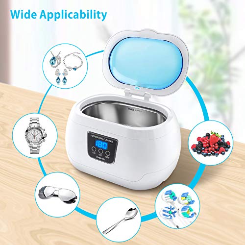 【Pulizia Efficiente】 Il Pulitore ad Ultrasuoni ha una vasca di lavaggio da 750 ml di grande capacità e genera 60,000 Hz di onde sonore ultrasoniche per una pulizia potente e delicata che non danneggerà i tuoi oggetti di valore mentre li rinfresca come nuovi.