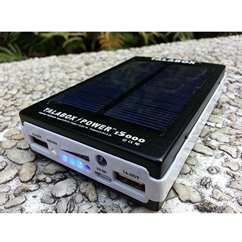 Talabox 15000 mAh nero batteria di backup portatile caricatore solare Power Bank solare caricabatterie solare con LED di ricarica per IPHONE6S, 6,6 Plus, 5S, iPad, iPod Touch e Sumsung S6, A5, NOTE5, Note4, Note3, Huawei Mate 8, mate 7, P8, P7, Blackberry, Nokia, HTC e tutti gli smartphone Android, Tabet PC.