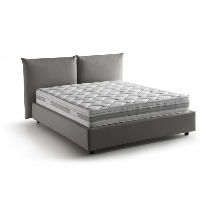 LETTO MATRIMONIALE - Letto contenitore con rivestimento in tessuto, 100% Made in Italy, Apertura frontale, con materasso Cm 160x200 incluso, Grigio. STRUTTURA - La struttura del letto è in fibra di legno rialzata da terra con piedini in ABS ed è rivestita in morbido tessuto di poliestere sfoderabile e lavabile in lavatrice a 30° - La testiera lineare abbinata con cuciture a vista in tessuto, è solida e resistente - La rete a doghe in legno multistrato è inclusa nella struttura - Meccanismo di apertura in ferro - L'aggiunta del pratico box contenitore salvaspazio permette al letto di trasformarsi in uno spazioso cassone per lenzuola, cuscini e piumoni. MADE IN ITALY - L'articolo è prodotto in Italia, con l'impiego dei migliori materiali e la massima qualità e cura nei dettagli - L'accortezza dei processi produttivi è sinonimo di affidabilità, resistenza e raffinatezza per un design lineare ed elegante - La Certificazione Made in Italy è garanzia di piena conformità alle normative