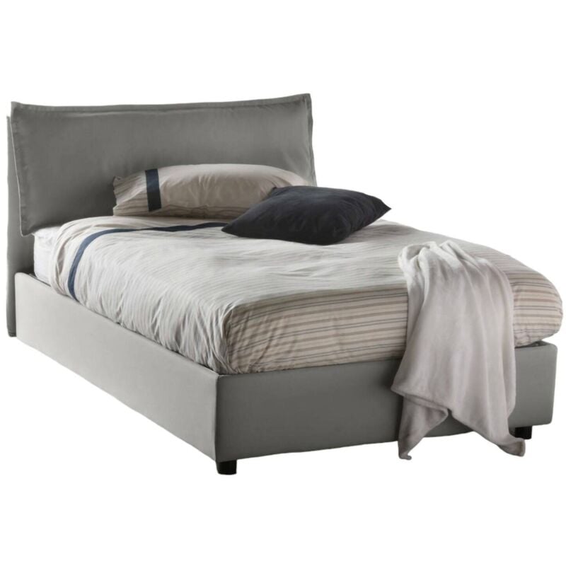 LETTO PIAZZA E MEZZA - Letto contenitore con rivestimento in tessuto, 100% Made in Italy, Apertura frontale, adatto per materasso Cm 120x200, Grigio. STRUTTURA - La struttura del letto è in fibra di legno rialzata da terra con piedini in ABS ed è rivestita in morbido tessuto di poliestere sfoderabile e lavabile in lavatrice a 30° - La testiera lineare abbinata in tessuto con cuciture a vista, è solida e resistente - La rete a doghe in legno multistrato è inclusa nella struttura - Meccanismo di apertura in ferro - L'aggiunta del pratico box contenitore salvaspazio permette al letto di trasformarsi in uno spazioso cassone per lenzuola, cuscini e piumoni. MADE IN ITALY - L'articolo è prodotto in Italia, con l'impiego dei migliori materiali e la massima qualità e cura nei dettagli - L'accortezza dei processi produttivi è sinonimo di affidabilità, resistenza e raffinatezza per un design lineare ed elegante - La Certificazione Made in Italy è garanzia di piena conformità alle normative