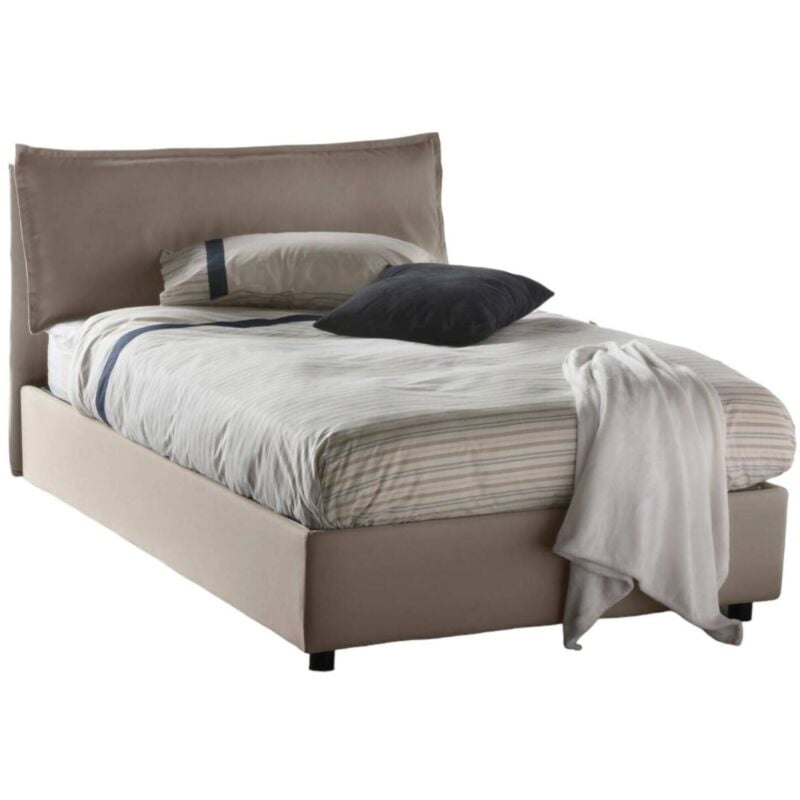 LETTO PIAZZA E MEZZA - Letto contenitore con rivestimento in tessuto, 100% Made in Italy, Apertura frontale, adatto per materasso Cm 120x190, Tortora. STRUTTURA - La struttura del letto è in fibra di legno rialzata da terra con piedini in ABS ed è rivestita in morbido tessuto di poliestere sfoderabile e lavabile in lavatrice a 30° - La testiera lineare abbinata in tessuto con cuciture a vista, è solida e resistente - La rete a doghe in legno multistrato è inclusa nella struttura - Meccanismo di apertura in ferro - L'aggiunta del pratico box contenitore salvaspazio permette al letto di trasformarsi in uno spazioso cassone per lenzuola, cuscini e piumoni. MADE IN ITALY - L'articolo è prodotto in Italia, con l'impiego dei migliori materiali e la massima qualità e cura nei dettagli - L'accortezza dei processi produttivi è sinonimo di affidabilità, resistenza e raffinatezza per un design lineare ed elegante - La Certificazione Made in Italy è garanzia di piena conformità alle normative