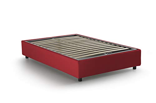 Talamo Italia Letto contenitore Una piazza e mezza Silvia Sommier, Made in Italy, Letto con rivestimento in tessuto, Apertura laterale, adatto per materasso cm 120x190, Rosso