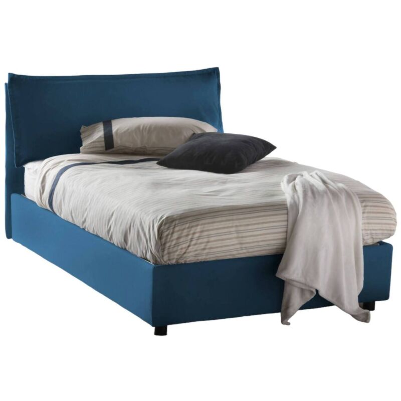 LETTO PIAZZA E MEZZA CLAUDIA - Letto contenitore con rivestimento in tessuto, 100% Made in Italy, Apertura frontale, adatto per materasso Cm 120x200, Blu. STRUTTURA - La struttura del letto è in fibra di legno rialzata da terra con piedini in ABS ed è rivestita in morbido tessuto di poliestere sfoderabile e lavabile in lavatrice a 30° - La testiera lineare abbinata in tessuto con cuciture a vista, è solida e resistente - La rete a doghe in legno multistrato è inclusa nella struttura - Meccanismo di apertura in ferro - L'aggiunta del pratico box contenitore salvaspazio permette al letto di trasformarsi in uno spazioso cassone per lenzuola, cuscini e piumoni. MONTAGGIO - Il montaggio è semplice e veloce: grazie agli strumenti di montaggio forniti in un kit insieme al prodotto e al libretto delle istruzioni potrete montare il vostro prodotto in pochi minuti. 100% MADE IN ITALY - La produzione 100% italiana garantisce affidabilità e resistenza - L'accortezza ai processi produttivi, la