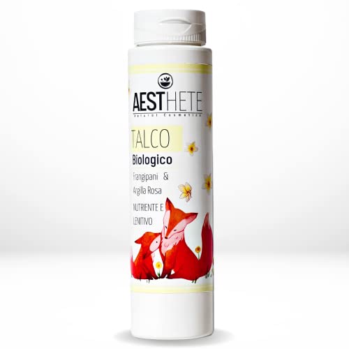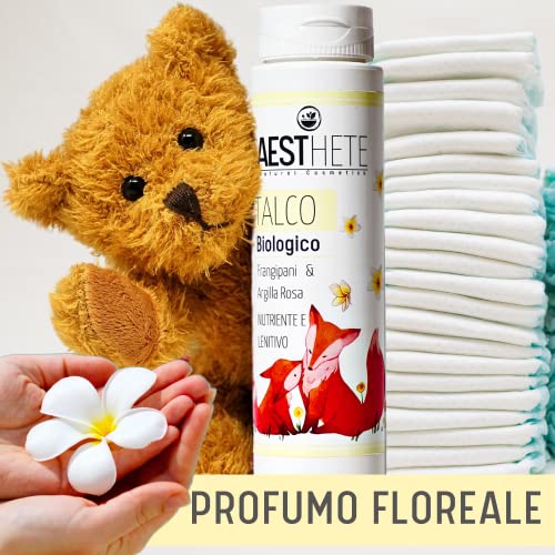 Talco Profumato Biologico Frangipane e Argilla Rosa Per Pelli Secche e Delicate | Talco Profumato Polvere con Amido di Riso 250 ml Lascia la Pelle Liscissima Gradevolmente Profumata e Fresca Aesthete