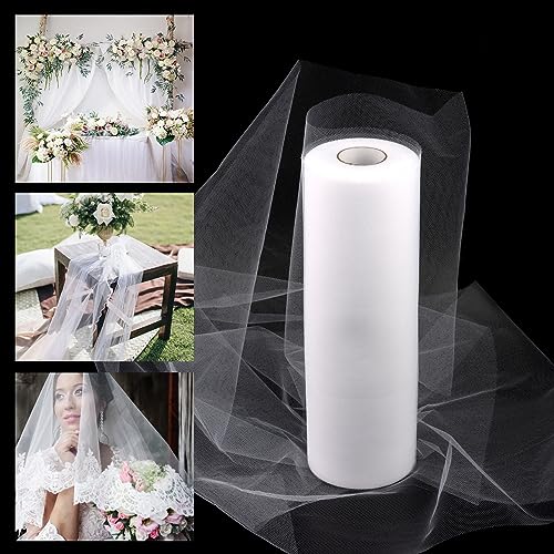 Talifoca Tulle Bianco Rotolo Matrimonio, 30cm x 91.5mTulle Bianco Rotolo Matrimonio Nastro Tulle Bianco Rotolo di Tulle Tessile Wedding Tulle Decoration per DIY Gonna Tabella Decorazione