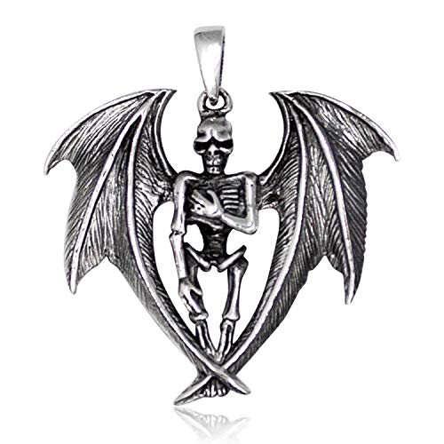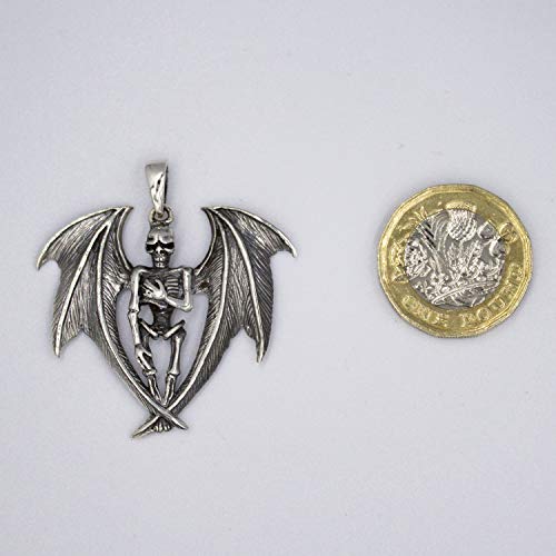 Talismanic Silver of London Ciondolo a Forma di Scheletro con Ali di Pipistrello in Argento Sterling 925 Massiccio.