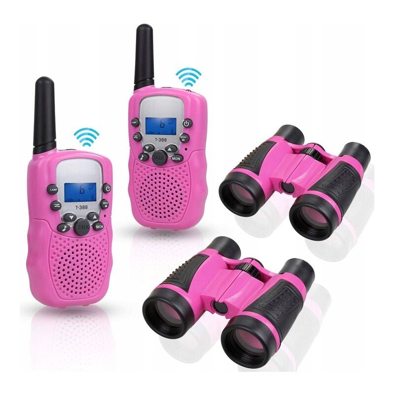 Il pacchetto include: 2 talkies-walkies per bambini 2 Binocolo per bambini Installare il binocolo in modo che i bambini possano giocare. Quando i bambini giocano a giochi di avventura con gli amici, possono indossare il binocolo attorno al collo. L'ingrandimento 5x eccellente consente anche ai bambini di vedere gli oggetti da vicino. Grazie al walkie talkie per scoprire cose sconosciute e capire le meraviglie naturali che stimolano e soddisfano la curiosità dei bambini multicanale e a lunga distanza: il bambino ha 22 canali da giocare, che mantengono i segreti interessanti con un amico o condividi con diversi partner;