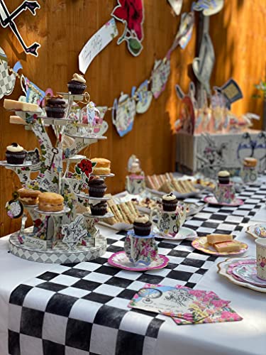 Talking Tables Truly Alice Runner da tavola a Scacchi, Stile Alice nel Paese delle Meraviglie, per Un tè o Compleanno, Monocromatico