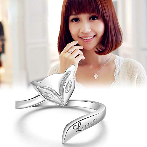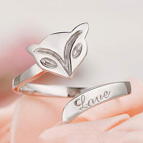 Taloit - Anello da donna regolabile in argento Sterling S925, con volpe inciso, per San Valentino, per fidanzata e moglie