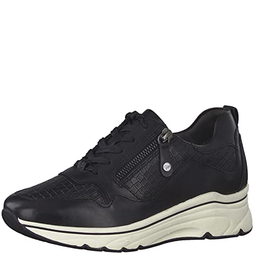 Tamaris Donna Sneaker, Signora Sneaker Basse,Comfort Lining,Scarpa Bassa,Scarpe da Strada,Tempo Libero,Sportivo,Black/Croco,39 EU