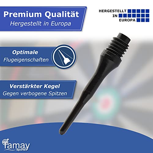 Tamay Punte per freccette in plastica, 1000 pezzi, con filettatura 2BA, punte di ricambio, particolarmente stabili e durevoli, Made in Europa (1000)