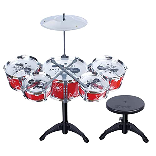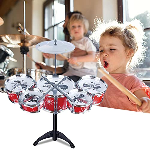 ZMKY Set di tamburi per bambini, liscio e durevole, strumento musicale educativo per bambini, sicuro e innocuo, mini batteria per bambini da 2 a 3 a 4 anni, Rosso
