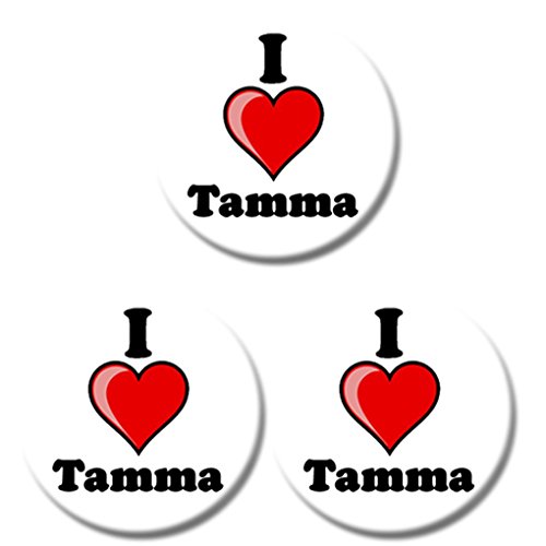 Set di tre i Love Tamma Button Badges - taglie a scelta - 25 mm & 38 mm, Printed Design, 25 mm (2.5 cm)