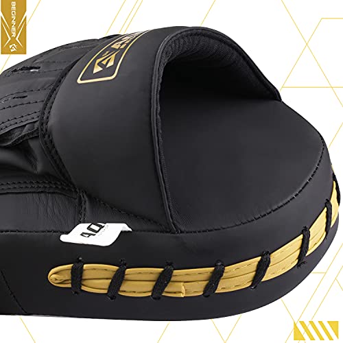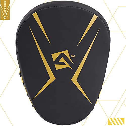 AQF Tamponi da boxe per allenamento - Colpitori Boxe Muay Thai Rex in pelle curvi Guanti da boxe per MMA, kickboxing, karate, sparring e arti marziali (Oro)