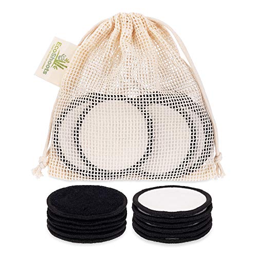 Tamponi di cotone riutilizzabili EcoShoots (PACCHETTO 24) Design antimacchia nero/bianco a doppio colore | x2 Borse per biancheria/deposito | Detergente, tonificante ed esfoliante