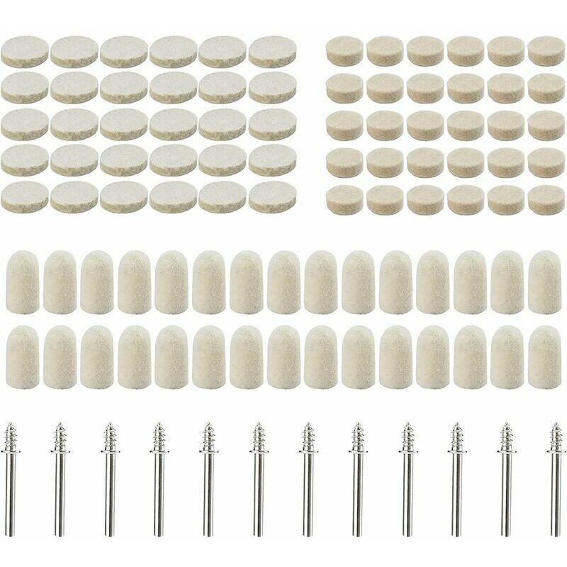 102 kit di mandrini per tamponi per lucidatura in feltro = 30 pezzi di cilindro grande + 30 pezzi di sfere cilindriche piccole + 30 pezzi + 12 pezzi di asta di metallo. Comodo e pratico: il disco in feltro è facile da usare e può essere utilizzato per accessori Dremel, utensile rotante, feltro, levigatrice rotante e strumento di lucidatura. LUCIDATURA E PULIZIA: Appositamente progettato per lucidare, lucidare e pulire. Ideali per la creazione di gioielli e lavori simili in quanto possono raggiungere aree difficili da raggiungere e lucidare lasciando una finitura lucida sull'oggetto. Usi degli accessori: funziona perfettamente per lucidare, levigare, intagliare e altro, rende i prodotti lucidi puliti e luminosi, ideali per vari tipi di stampi, vetro, pietra, ceramica, dispositivi medici, metallo, ecc. Con superficie del cuscinetto: alta qualità, durezza moderata . La scatola di immagazzinaggio trasparente per una facile conservazione può anche essere facilmente trovata quando