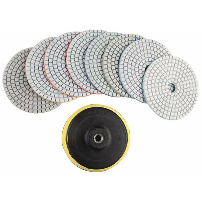La confezione include: 8 tamponi per lucidatura a umido a grana mista (30#, 50#, 100#, 200#, 400#, 800#, 1500#, 3000#), 1 platorello a strappo (foro 5/8) x 11 fili). Materiale: polvere di diamante e polvere di resina. Aggressivo e resistente realizzato con polvere di diamante di qualità impregnata di resina Punti specifici: Affilato, resistente all'usura e ad alta efficienza. RPM ottimale 2200, RPM massimo 12000. Diametro 4, altezza 3MM, parte posteriore morbida e fibbia Applicazioni: Ideale per tutti i materiali a superficie solida. Perfetto per granito, cemento, marmo, pietra, piastrelle, ecc. Può essere utilizzato a secco, ma i migliori risultati si ottengono con l'acqua. Nome: disco abrasivo diamantato da 9 pezzi Specifiche: 30/50/100/200/400/800/1500/3000 da Confezione: 78*100*100mm (sacchetto di plastica) Peso: 291 g Quantità consegnata: Confezione da 9 Avviso: Le dimensioni e il peso in grammi sono tutti misurati a mano e potrebbero esserci degli errori;