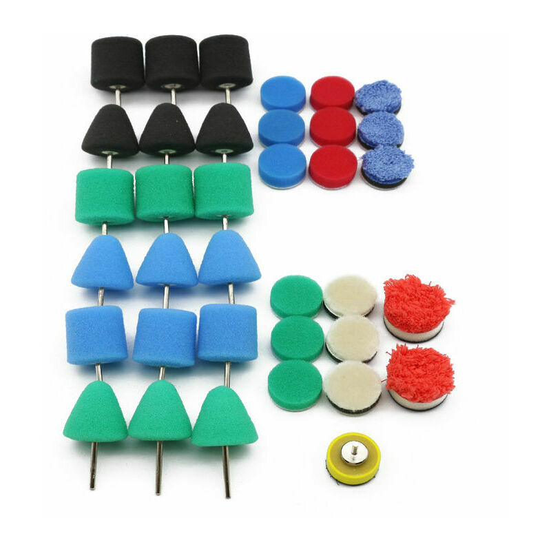 Caratteristiche: 1. Può essere utilizzato in aree come i fari delle auto, i fendinebbia, i freni luci, maniglie delle porte, emblemi, superfici in vetro graffiate, pannelli interni della console o piccole aree 2. Fornisce esperienze di cura automobilistica di qualità lavorando su aree difficili da raggiungere dove molti lucidatori non possono. E può essere utilizzato con lucidatrice rotativa, trapano elettrico, ecc. tenere il perno di bloccaggio per facilitare la sostituzione della testa di lucidatura. 5. Diversi strumenti di lucidatura possono soddisfare diverse esigenze di lucidatura. br/> Facile da sostituire e riutilizzare. Specifiche: Materiale principale: spugna+lana Tipo: 69 pezzi, 28 pezzi, 36 pezzi, 61 pezzi (opzionale) Dimensione confezione: 220 * 150 * 120 mm / 8,7 * 5,9 * 4,7 pollici Imballaggio del peso del pacchetto: 69 pezzi: 470 g / 1,0 libbre 28 pezzi: 450 g / 1,0 libbre 36 pezzi: 90 g / 3,2 once 61 pezzi: 253 g / 8,9 once Lista imballaggio: 36 pezzi: Cilindro nero