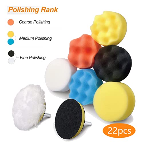 22 Pack 3"Tamponi per lucidatura, Tamponi lucidatura,Spugne lucidatura auto, Spugna per Lucidare,Kit per Lucidatrici Auto, con 2Pcs M10 Adattatore per Lucidatura, Levigatura, Ceretta