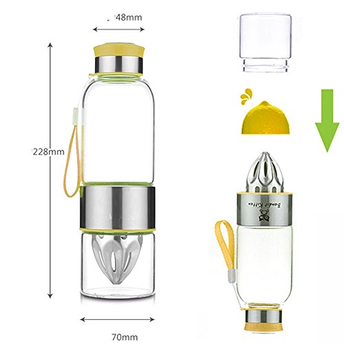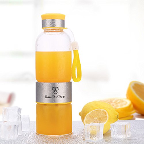TAMUME 500ml Bicchiere Juicer di Frutta Borracce con Infusore Bottiglia d'Acqua Infusione di frutta per Spremiagrumi e Vetro Bottiglia (Giallo)