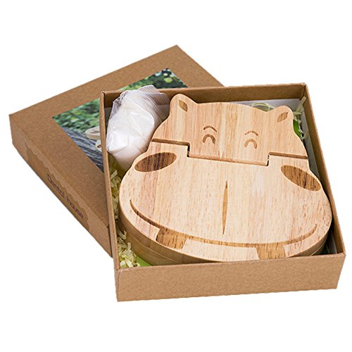 TAMUME Grande Smiley Ippopotamo Legno Denti Scatoletta con 22 Fori Denti Confezione Albero Della Gomma Regalo Keepsake Bambino Denti da Latte Contenitore a Accarezzare Memoria Bambino Scatola Denti - Ippopotamo