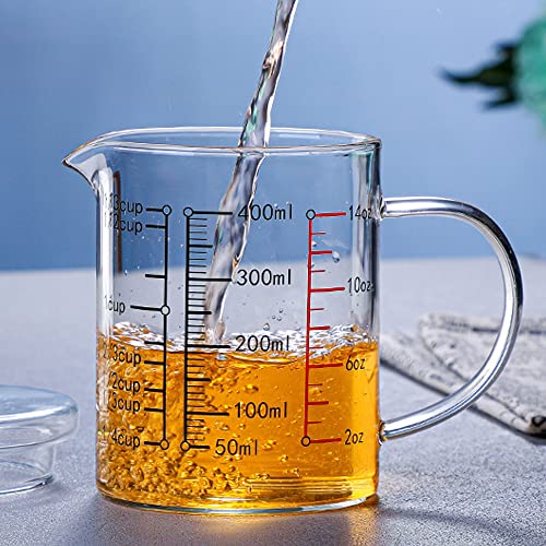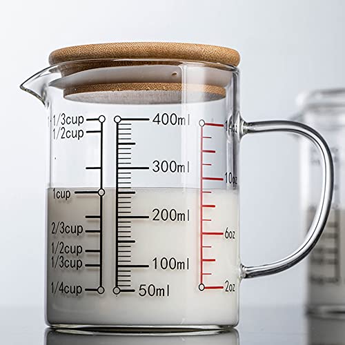 TAMUME Misurino in Vetro con Coperchio, Caraffa Graduata con Scala Multipla (400ml)