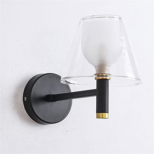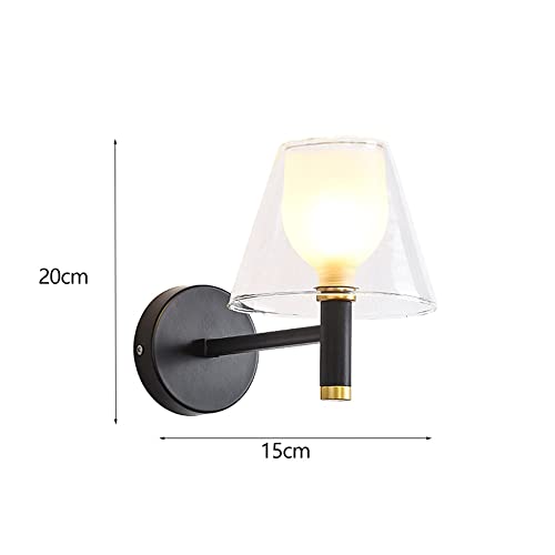TAMYUSE Applique da Parete da Comodino con Paralume in Vetro Trasparente Lampada da Parete in Metallo Nero Lampade da Comodino da Bagno Lampade da Comodino Lampada da Lettura per Soggiorno Camera