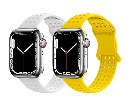 【Compatibilità】2 cinturini sportivi in morbido silicone da 38 mm/40 mm/41 mm/42 mm/44 mm/45 mm, per donne e uomini, cinturino di ricambio compatibile con Apple Watch Series 7/5/4/3/2/1/SE, Sport Edition, tutte le versioni.