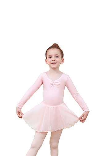 Tancefair Costume da balletto per bambini Vestito da balletto per ragazze Abito da body da balletto Manica corta/lunga Abito da ginnastica con scollo a V Gonna in chiffon Costume da ballo