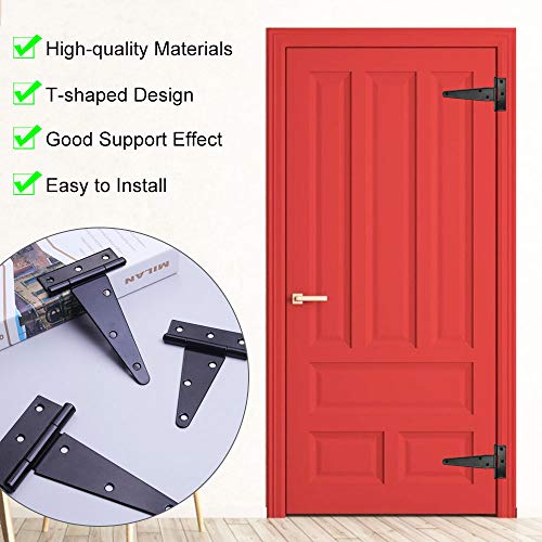 TANCUDER 6 Pezzi Cerniera Porta Esterna con 36 Viti Cerniera a T nera Cardini per Porte Cerniere per Carichi Pesanti Cerniere per Cancelli in Ferro per Porte, Finestre, Casette da Giardino (4 polici)