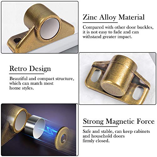 【Retrò e classico】Il magnete dell'armadio è realizzato in bronzo vintage, che non si sbiadirà facilmente. È compatibile con tutti i tipi di mobili in stile retrò, aggiungendo moda e modernità ai tuoi mobili. La chiusura magnetica dell'armadio può essere nascosta nei mobili, che è sia bella che resistente.