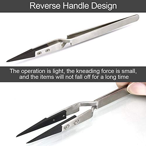 【Punta in plastica antistatica】La punta delle pinzette è realizzata in materiale plastico sostituibile. La punta in plastica ha una funzione antistatica, adatta per il funzionamento di componenti elettronici delicati e sensibili e non causerà danni statici alle apparecchiature elettroniche sensibili.