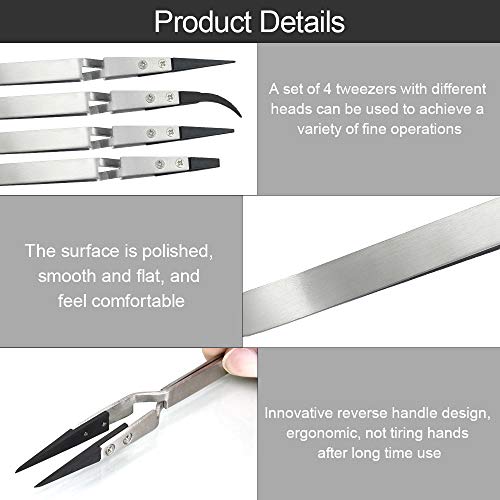 TANCUDER 4 Pezzi Pinzette Industriali Antistatiche in Acciaio Inossidabile Pinzette da Laboratorio Pinzette di Precisione Professionali Inox per Macchinari di Precisione, Creazione di Gioielli