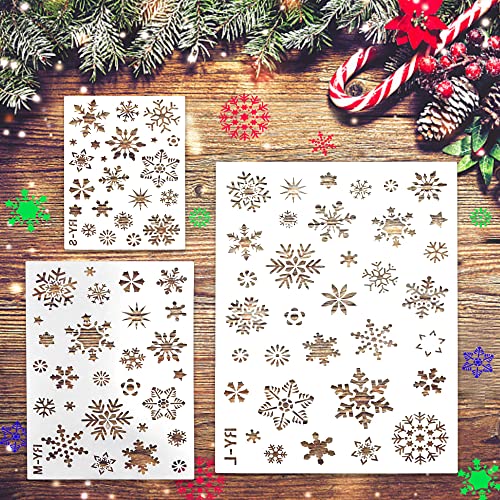 TANCUDER 3 Pezzi Stencil a Forma Fiocco di Neve Modello di Stencil Natalizi Riutilizzabili in Plastica Stencil di Natale Artigianale Fai-da-Te Modello Disegno di Natale per Decorare Porte e Finestre